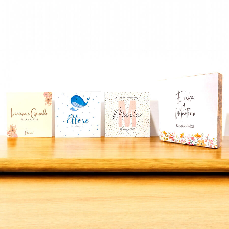 Ogni bomboniera diventa unica, su misura: può essere personalizzata con nomi, immagini, foto